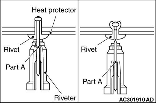 ]]A[[ RIVET/FRONT FLOOR FRONT PANEL HEAT PROTECTOR/FRONT FLOOR REAR PANEL HEAT PROTECTOR/RIVET INSTALLATION