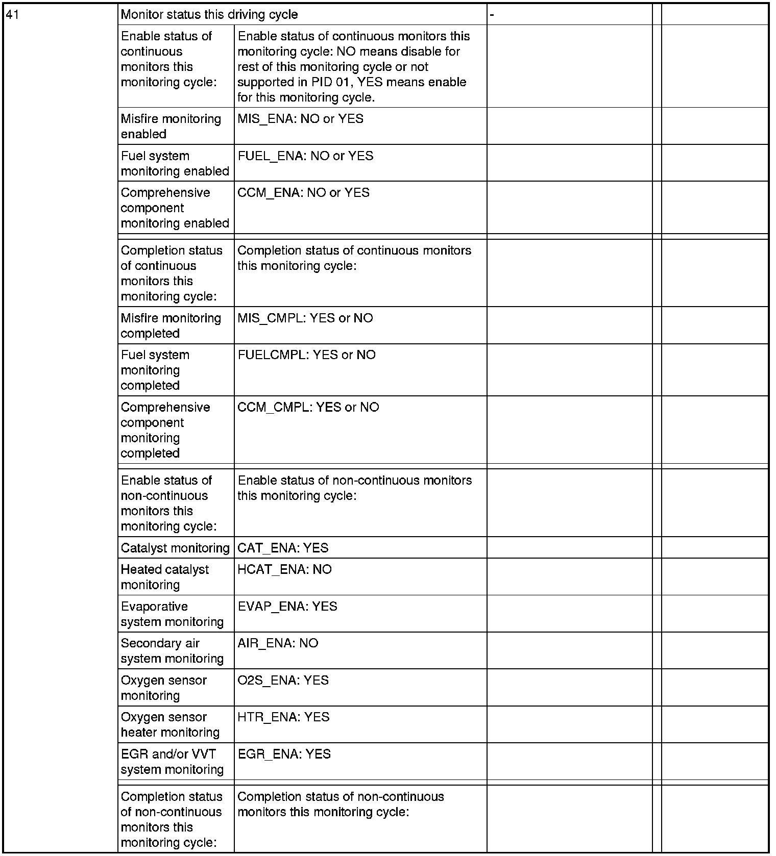 The ECM will respond to this message by transmitting the requested data value last determined by the system. All data values returned for sensor readings will be actual readings, not default or substitute values used by the system because of a fault with that sensor.