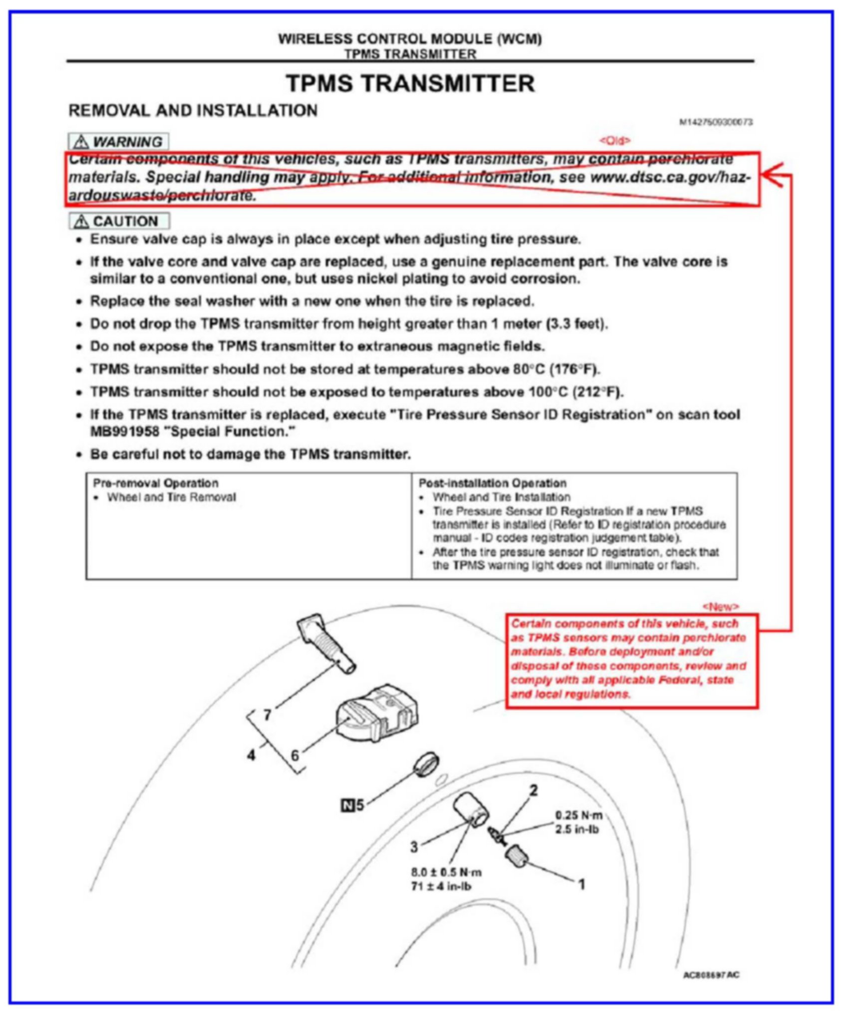 Electrical - Revised KOS, TPMS and WCM Caution Statements
