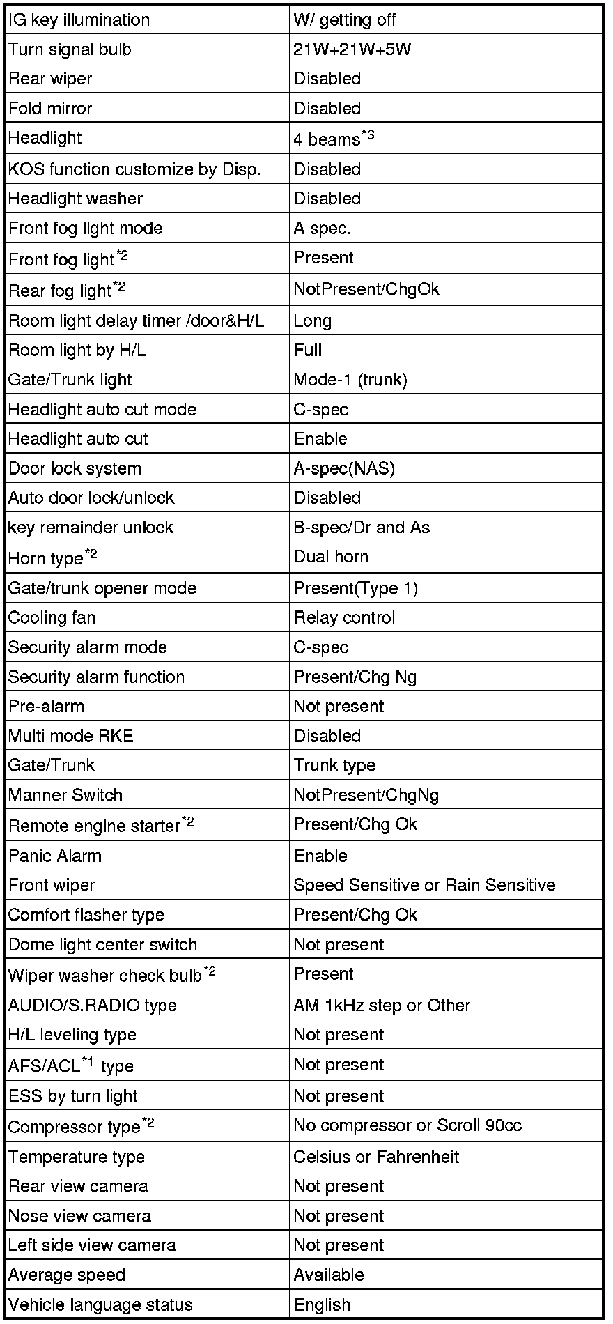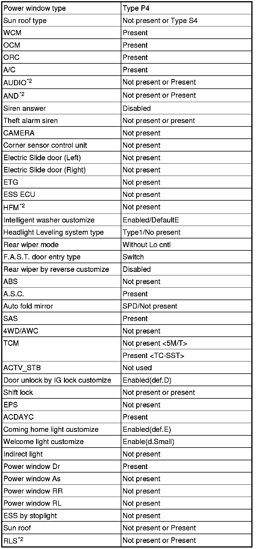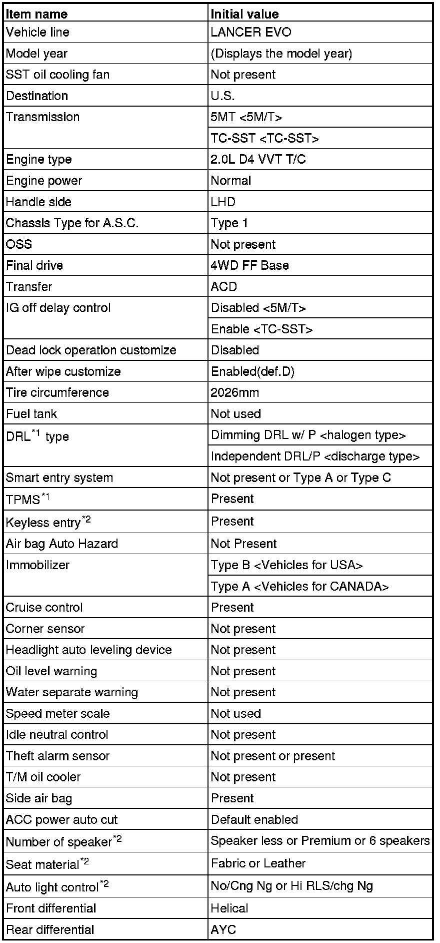 - If there is any item indicated by the option coding after equipment change, set ETACS-ECU so that the option coding data corresponds with the equipment content. Functions and systems do not work normally if the setting does not correspond with the equipment.