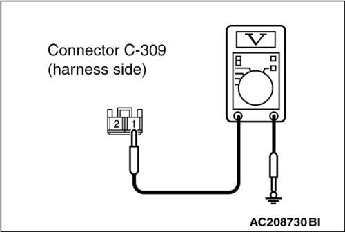 (1)Disconnect ETACS-ECU connector C-309 and measure the voltage available at the wiring harness side of the connector.