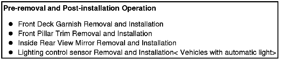 1. When replacing the windshield glass, temporarily set the windshield glass against the body, and place a mating mark on the windshield glass and body.