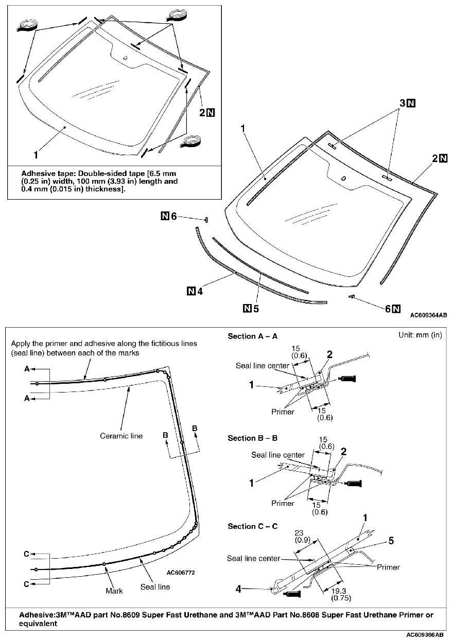 When reusing the windshield glass, remove the adhesive still adhering to the windshield glass, and clean with 3M(TM) AAD Part number 8906 or equivalent.