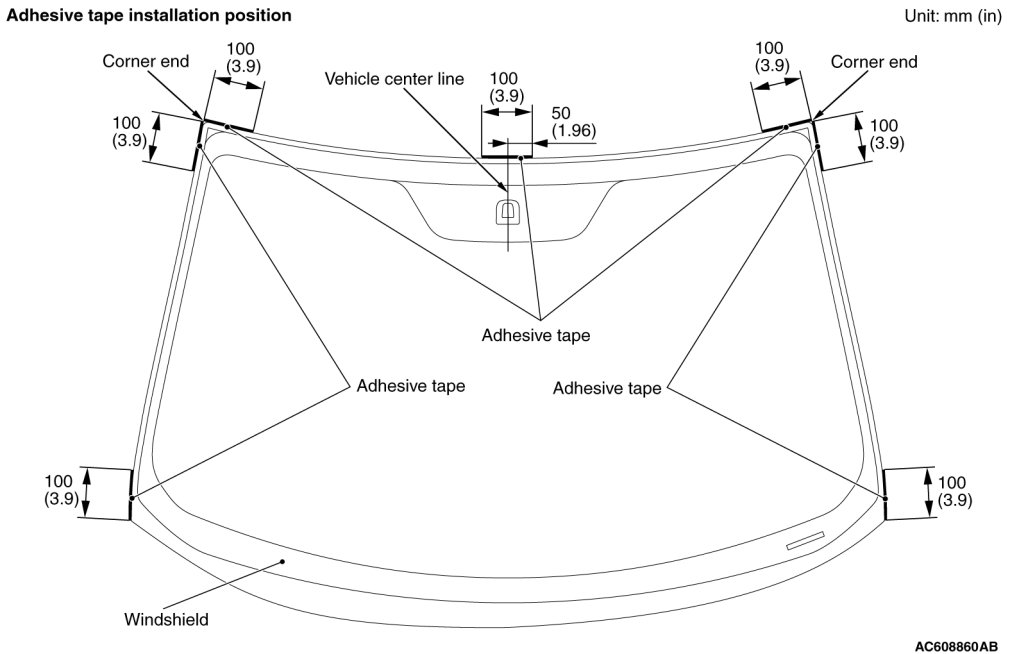 1. To protect the body (paint surface), apply cloth tape to all body areas around the installed windshield glass.