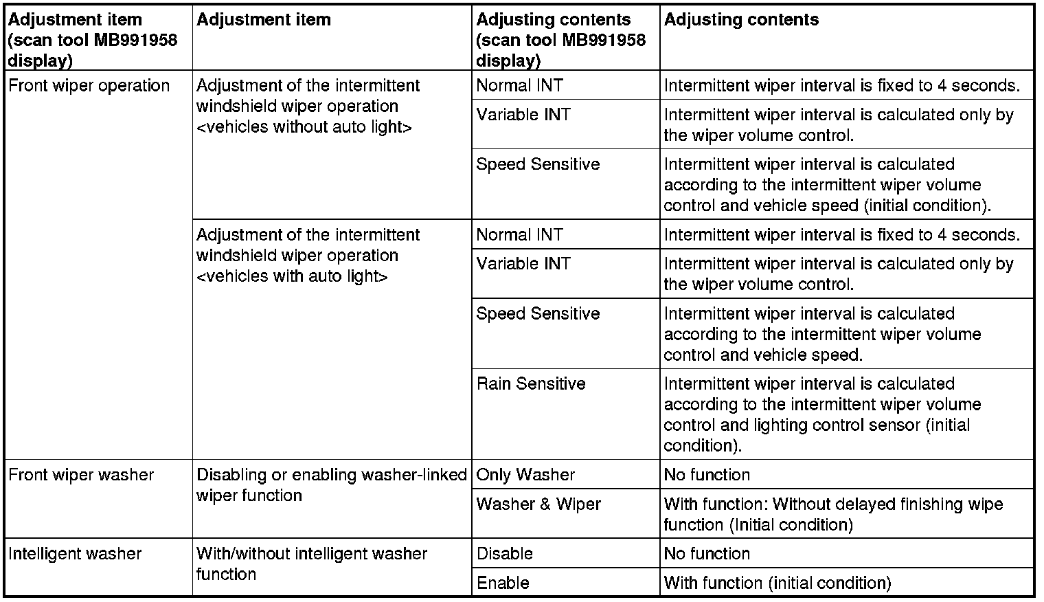 By operating the ETACS system or MMCS of scan tool MB991958, the following functions can be programmed. The programmed information is held even when the battery is disconnected.
