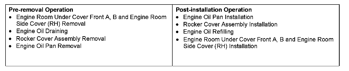 1. Completely remove the liquid gasket adhered to the timing chain case assembly, cylinder block and cylinder head, and then degrease using the volatile degreasing agent.