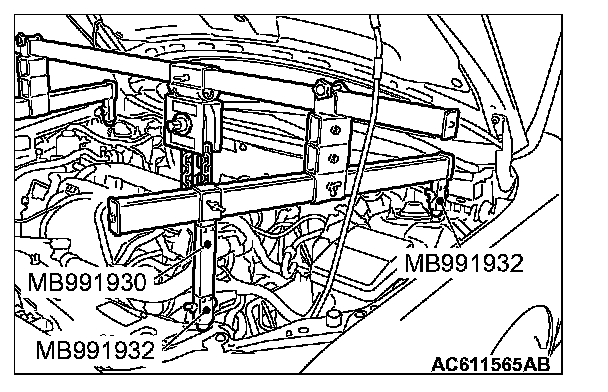 (1) Assemble the special tool MB991928. Set the following parts on the base hanger.