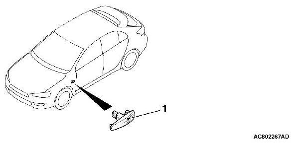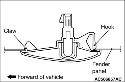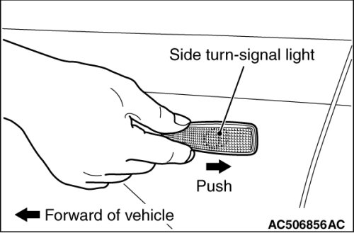 Push the side turn-signal light toward the vehicle rear to bend the hook, and then remove by disengaging the tab from the fender panel.
