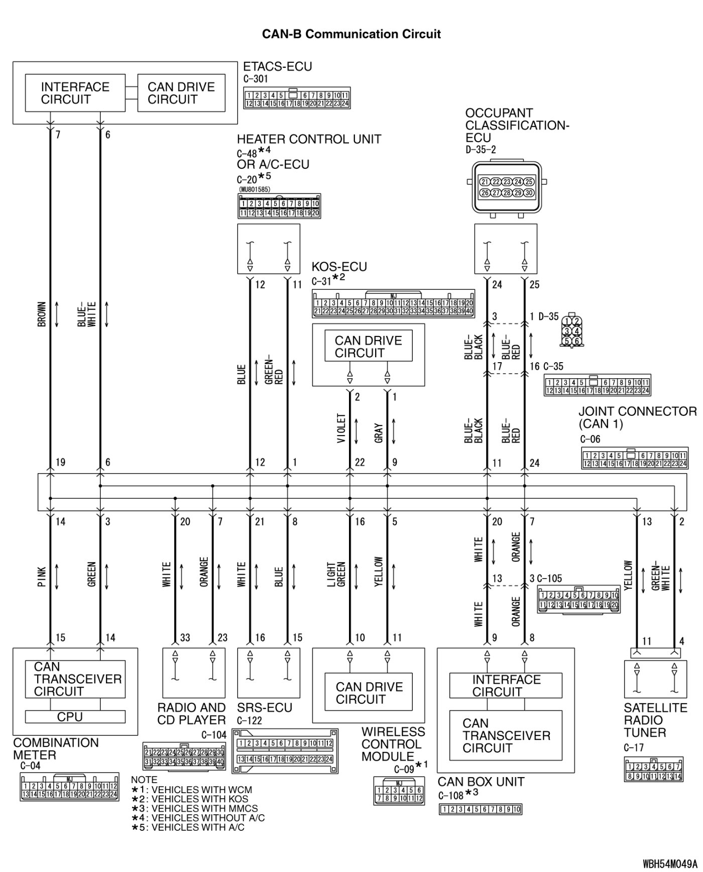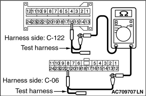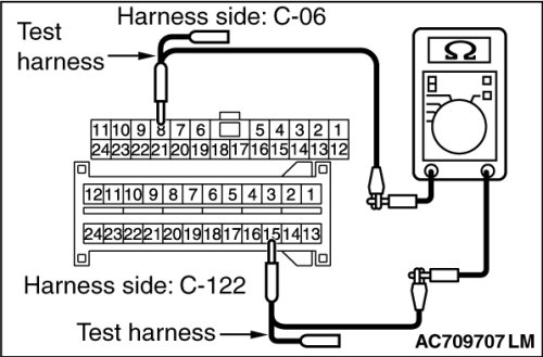 (1)Disconnect joint connector (CAN1) C-06 and SRS-ECU connector C-122, and check the wiring harness.