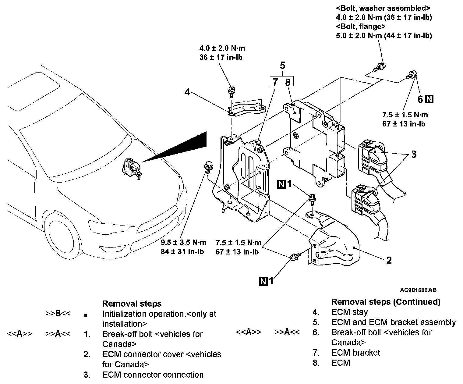- When the ECM are replaced, make the battery current sensor calibration by using scan tool MB991958 (Refer to Precautions before Service, Battery Current Sensor Calibration). Battery Current Sensor Calibration