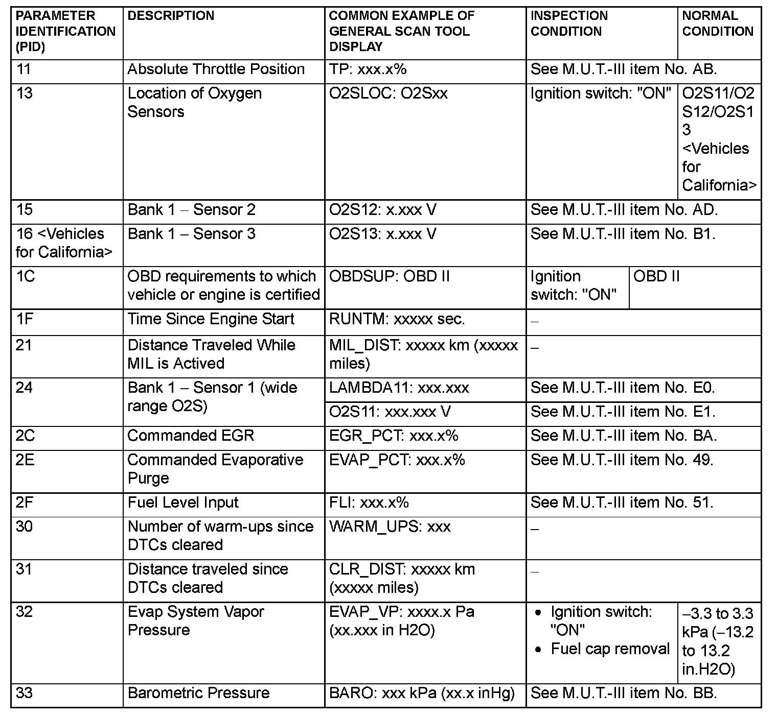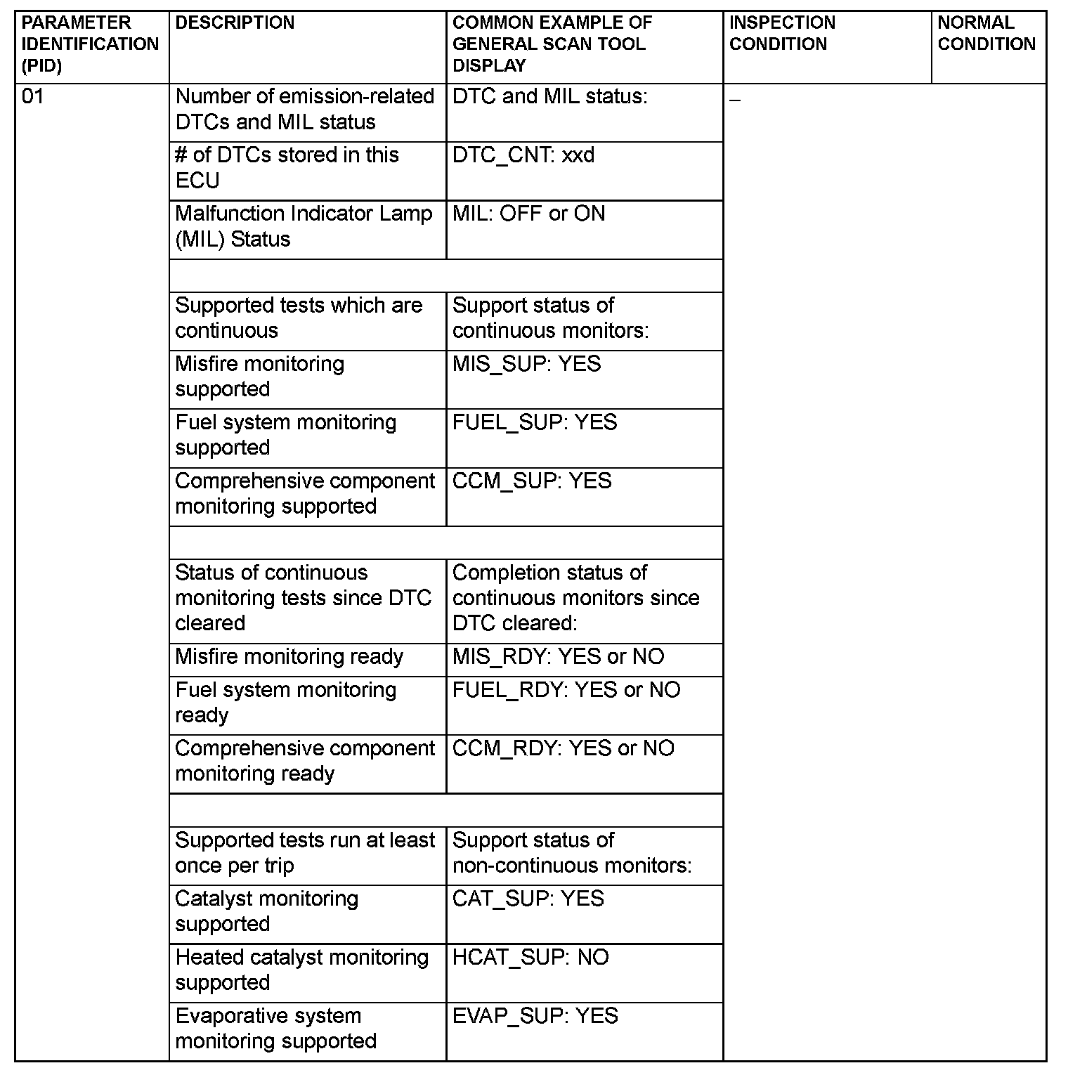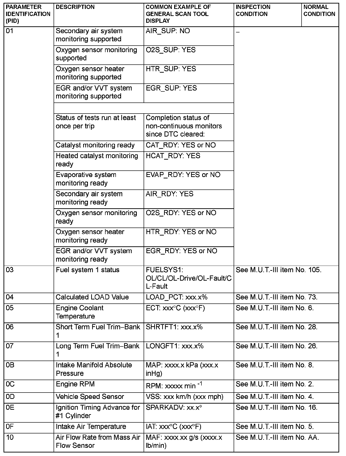 General Scan Tool (GST) Mode 01 Reference Table