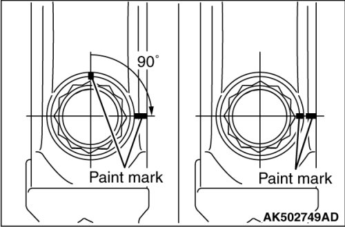 Put a paint mark on the connecting rod at 90° position in the tightening direction of the bolt with reference to the paint mark position of the bolt.