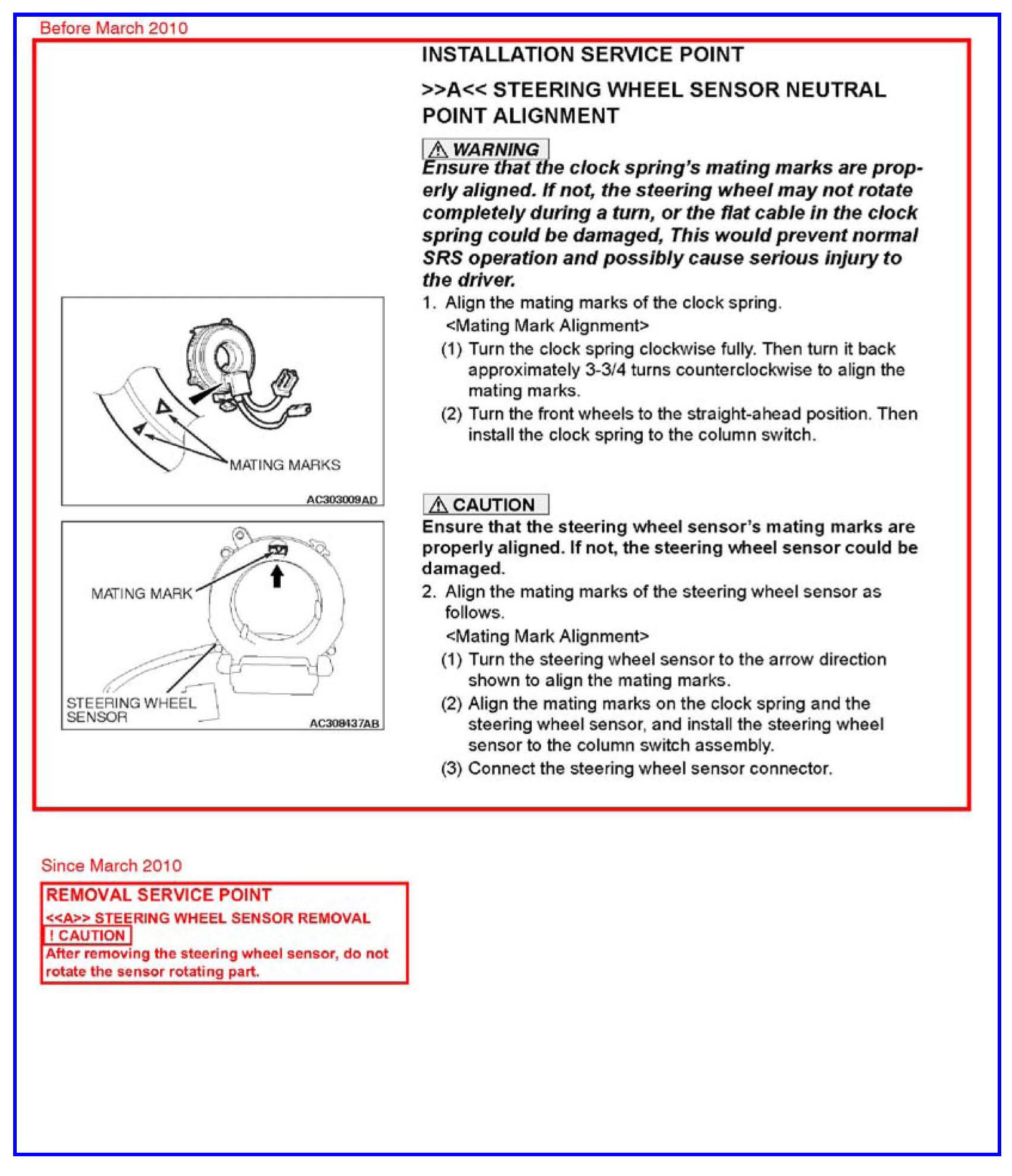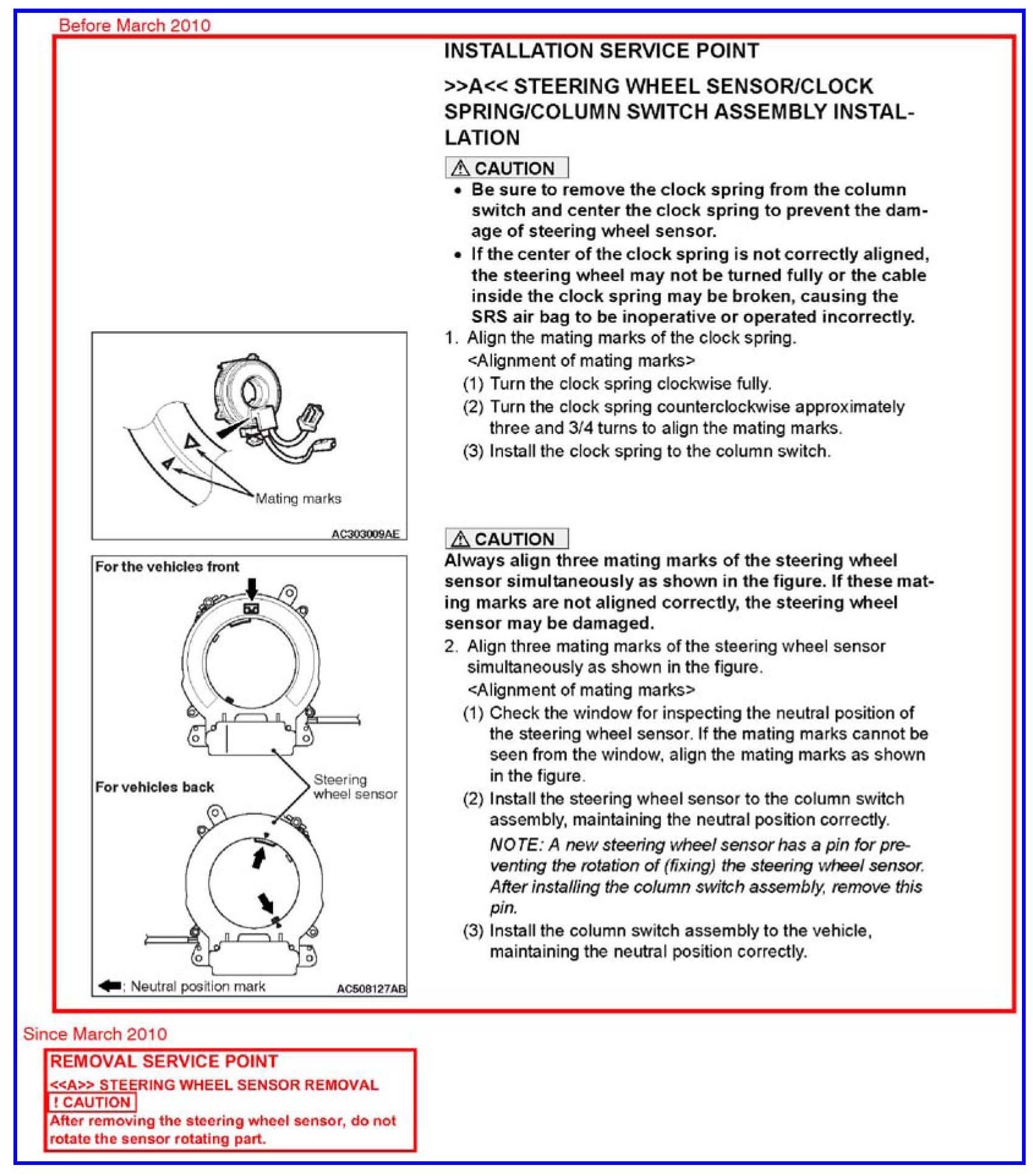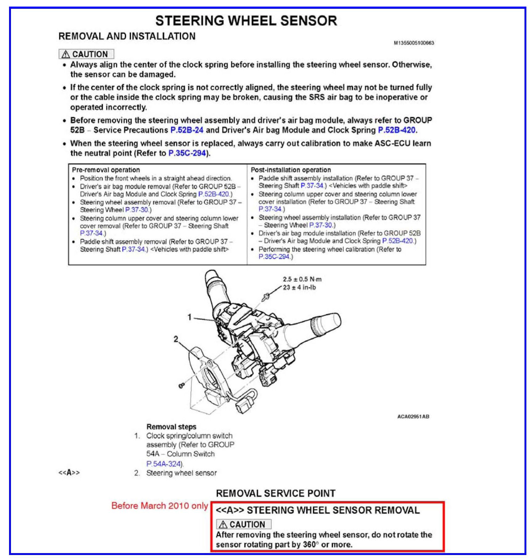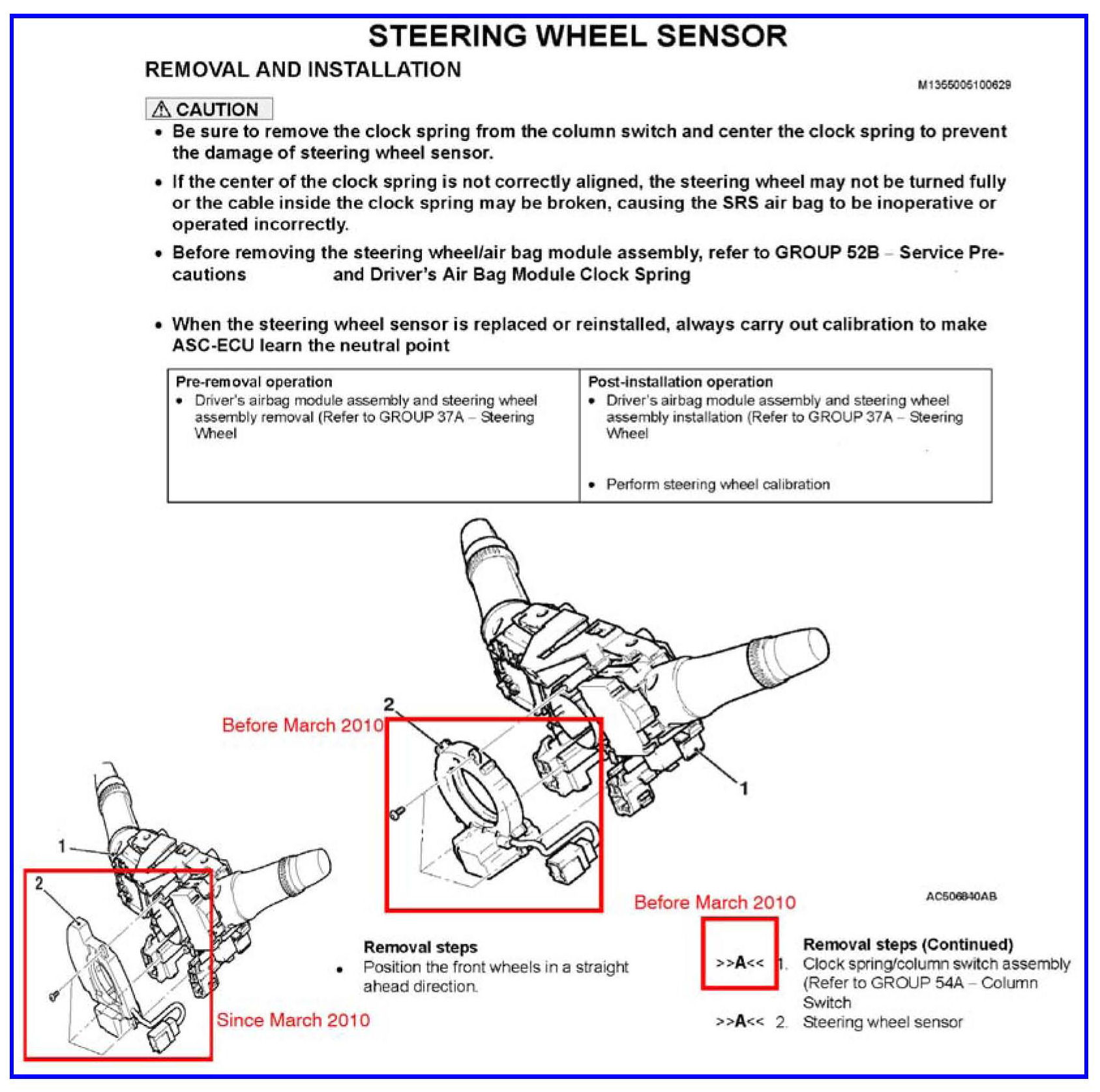 2010 Lancer Service Manual Group 35C - Steering Wheel Sensor Removal and Installation