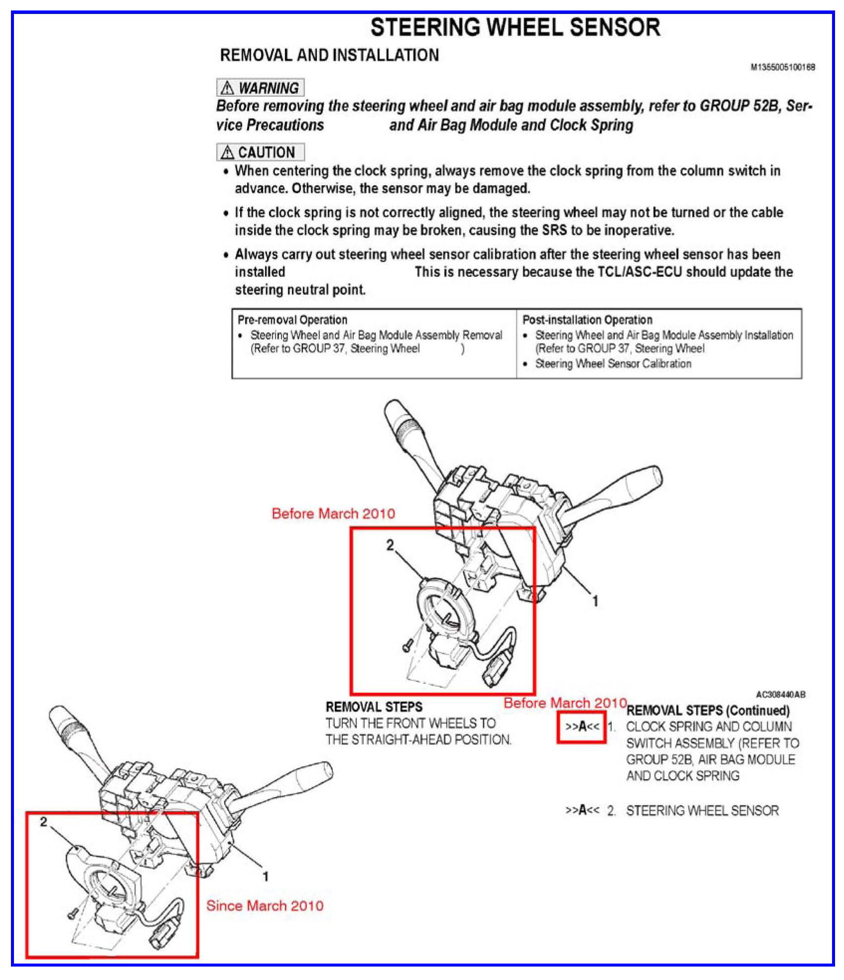2010 Lancer Sportback Service Manual Group 35C - Steering Wheel Sensor Removal and Installation