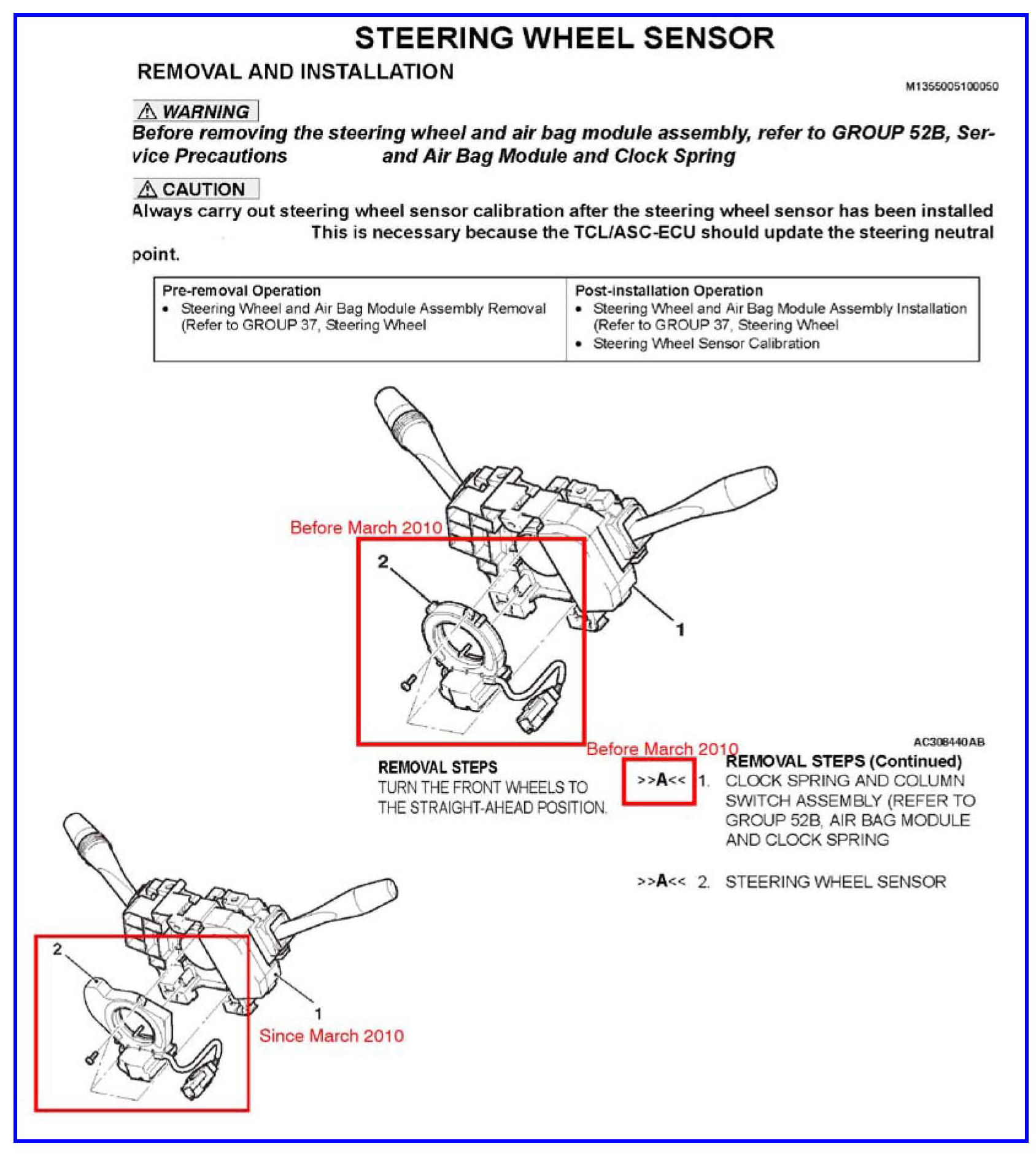 A modified Active Stability Control (ASC) steering wheel sensor is installed on affected vehicles produced since 3/1/2010 and supersedes the original sensor as the service part for earlier models. Do not rotate this new sensor before installation.