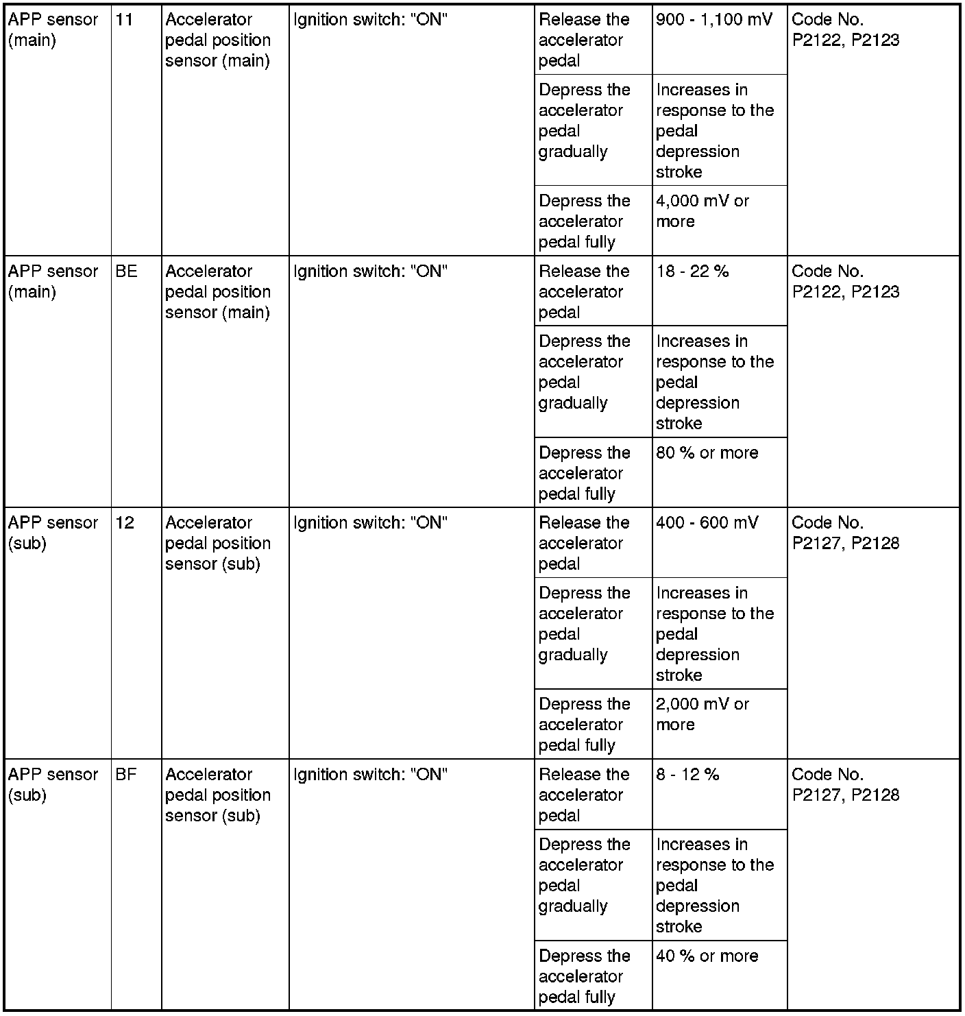 *1: In a new vehicle [driven approximately 500 km (311 mile) or less], the mass airflow sensor output value is sometimes 10% higher than the standard value.
