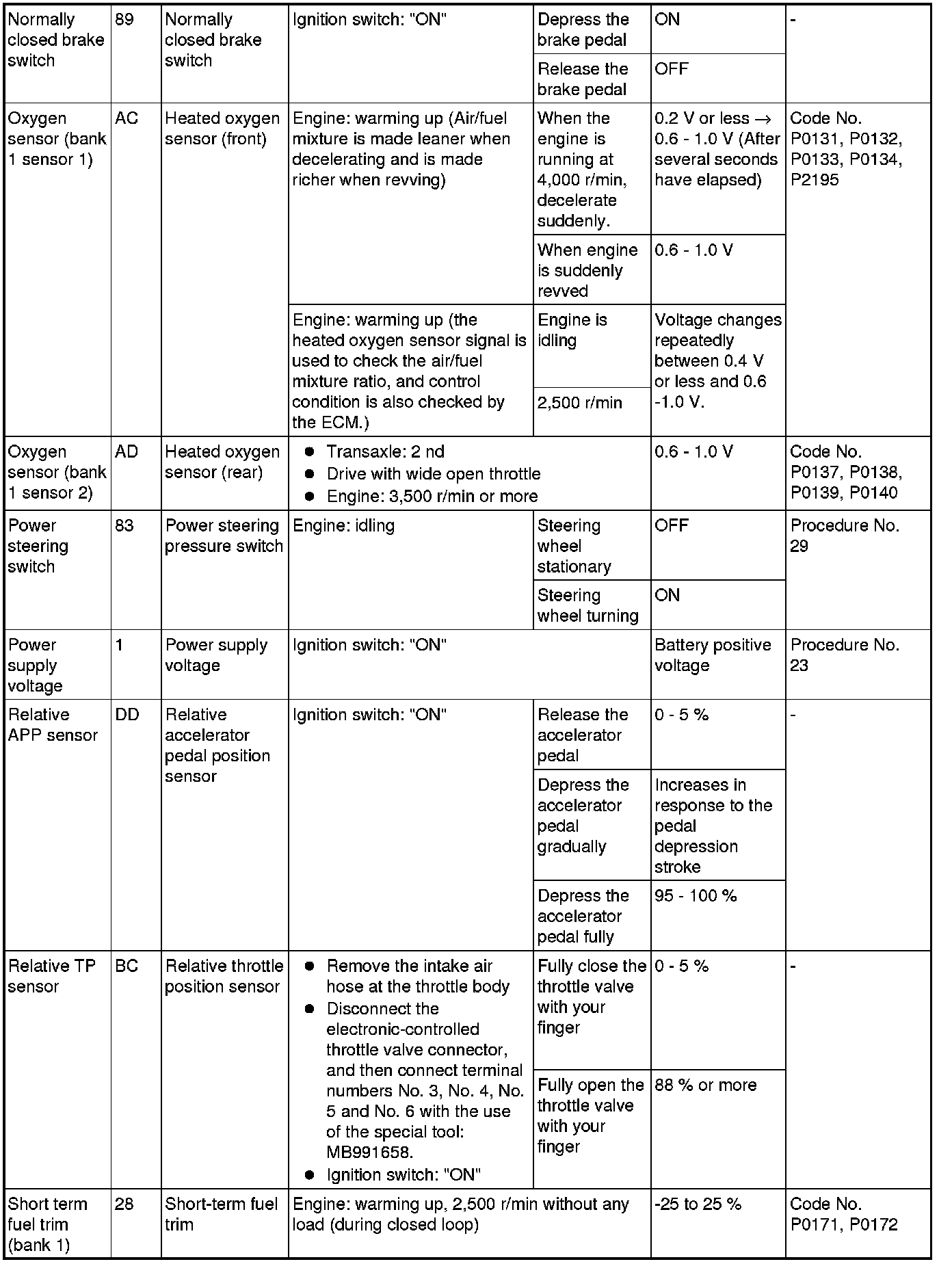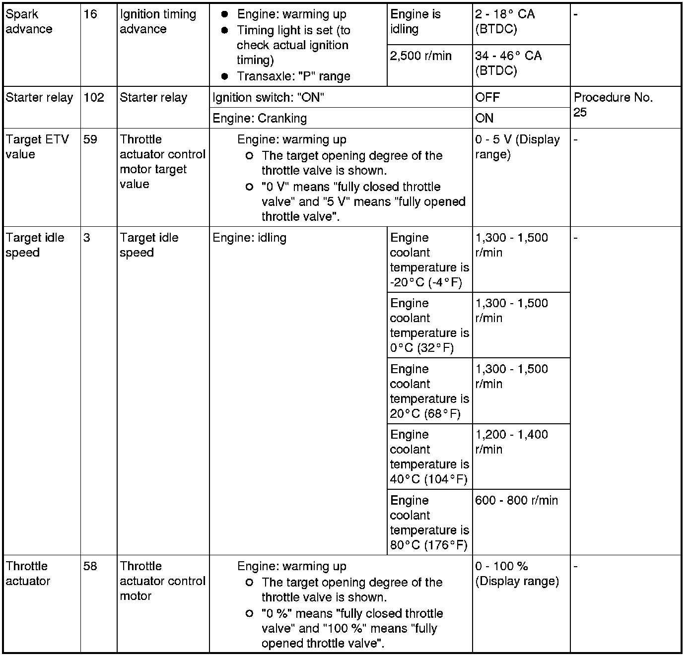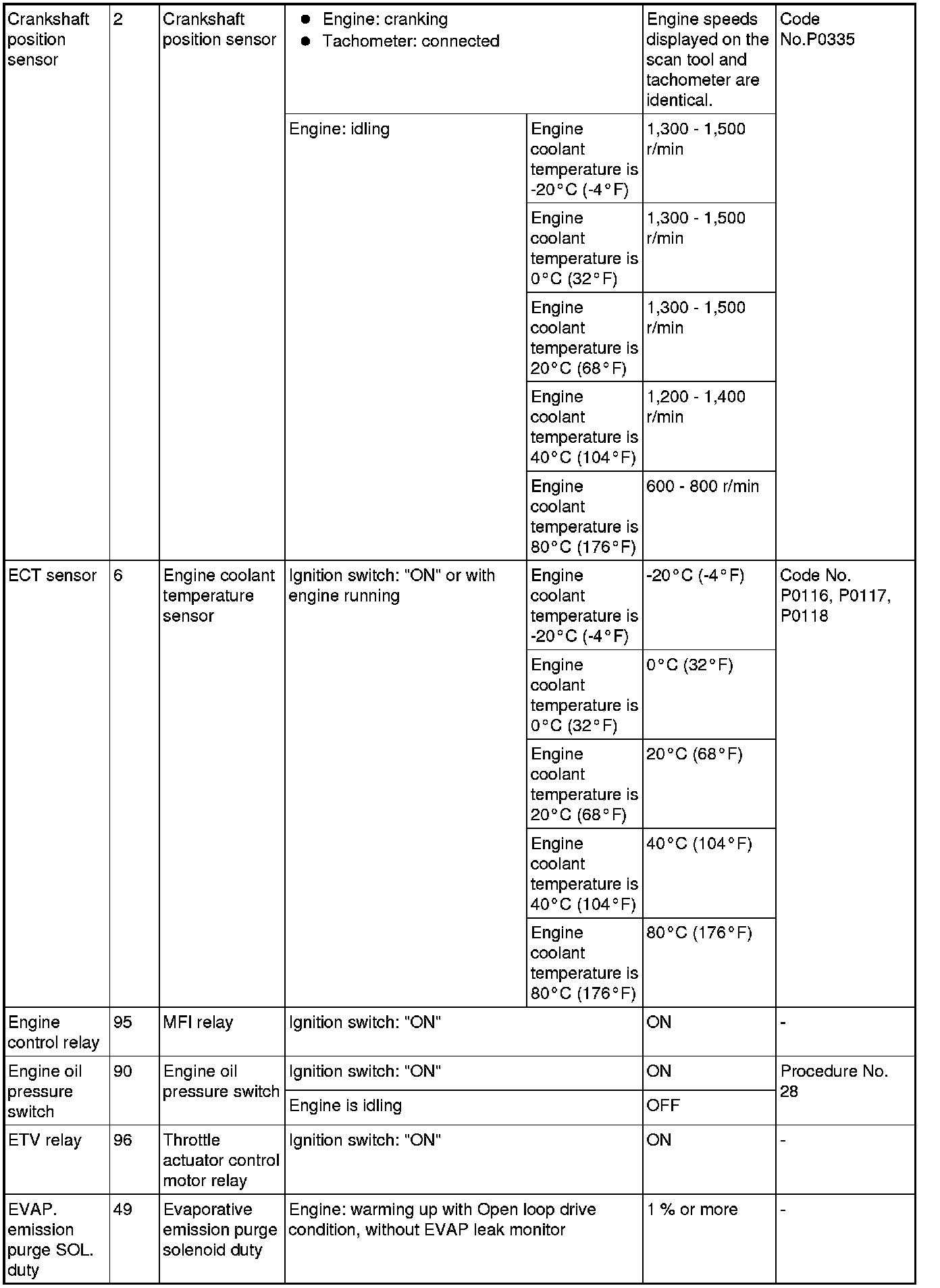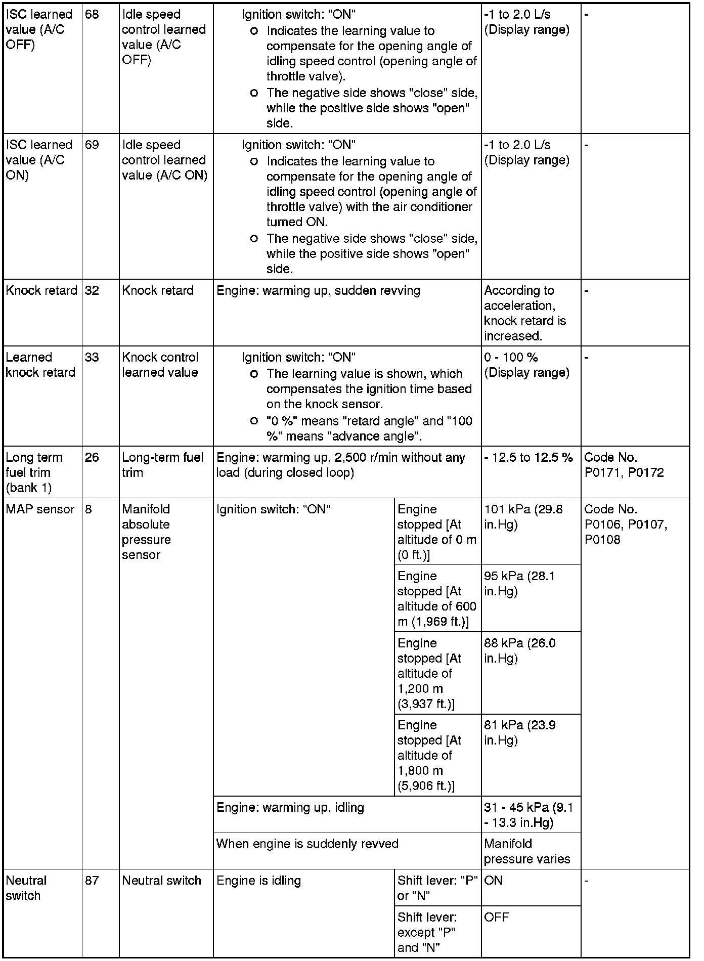 *5: Data items are displayed on scan tool display, but the in-line 4 engine is not applicable and its data is displayed as "N/A".