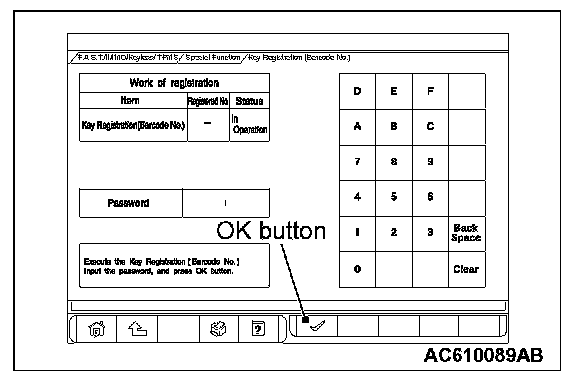 1. On the "Keyless ID Reg." screen, enter the password and press the OK button.