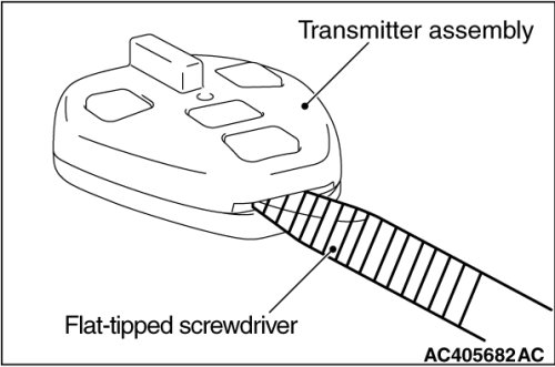 To prevent damage to the transmitter, wrap a flat-tipped screwdriver with protective tape before prying.