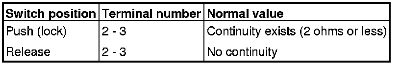(2)Check continuity when the liftgate lock release handle is operated to "ON" or "OFF" position.