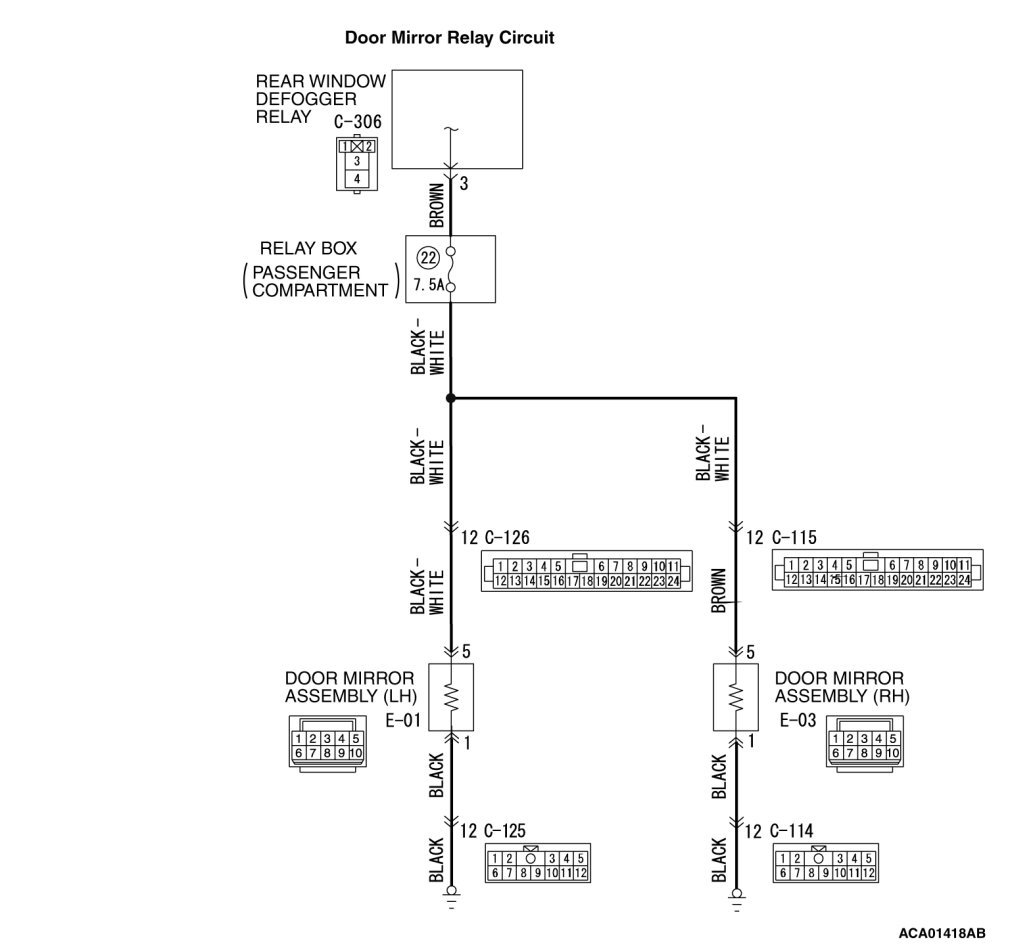 STEP 5. Check the wiring harness between door mirror (LH) connector E-01 (terminal 5) and rear window defogger relay connector C-306 (terminal 3).
