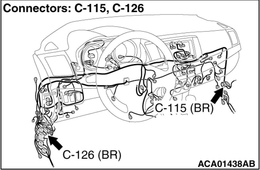 Also check intermediate connector C-115 for loose, corroded or damaged terminals, or terminals pushed back in the connector. If intermediate connector C-115 is damaged, repair or replace the damaged component(s) as described in Harness Connector Inspection Harness Connector Inspection.