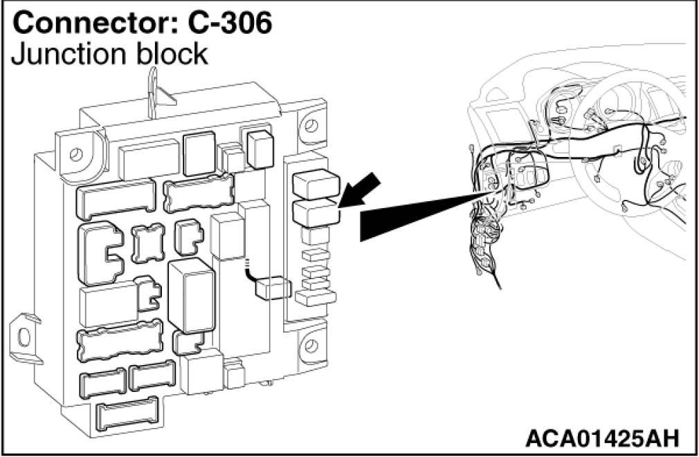 Q. Is the door mirror (RH) connector E-03 and rear window defogger relay connector C-306 in good condition?