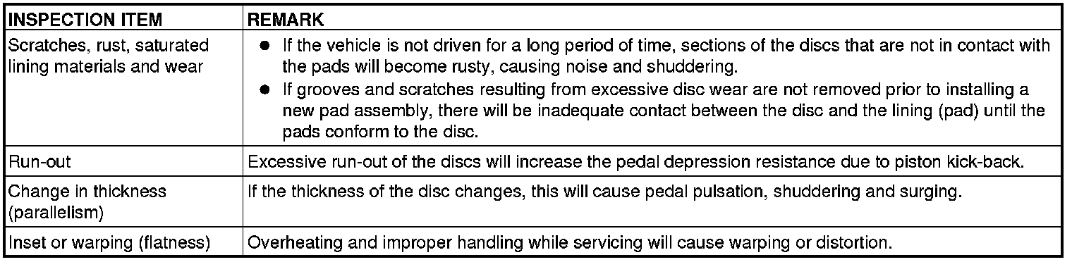 Disc brakes must be kept within the allowable service values in order to maintain normal brake operation.