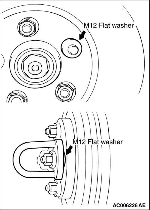- Insert M12 plain washer and then install the adapter as shown before grinding.Failure to use the M12 plain washer will cause the brake disc to be deformed and ground incorrectly.