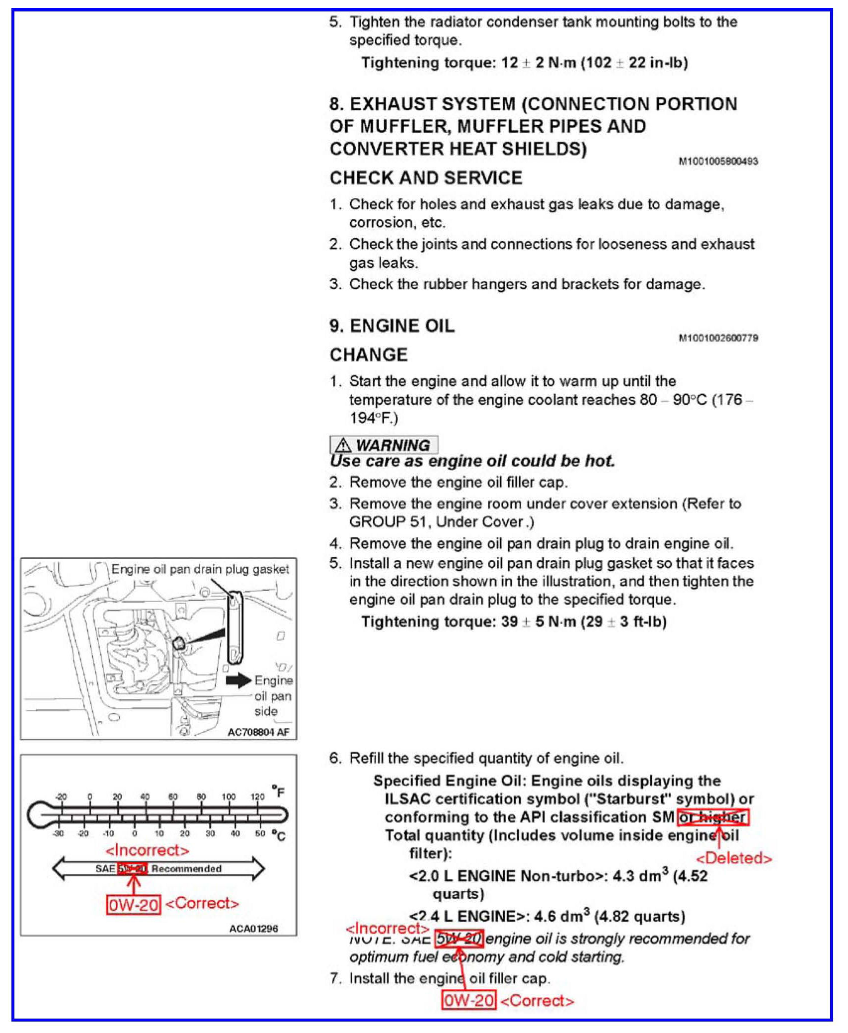Engine oil viscosity specifications for affected vehicles are incorrect in the affected service manual pages.