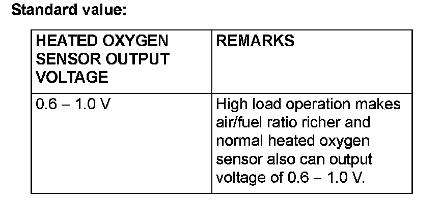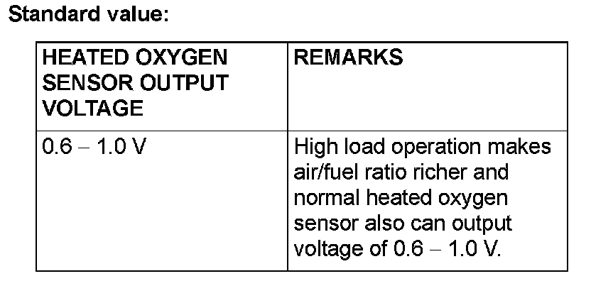 - If the temperature of sensing area does not reach the high temperature [of approximately 400 °C (752 °F) or more] even though the heated oxygen sensor is normal, the output voltage would be possibly low in spite of the rich air-fuel ratio.