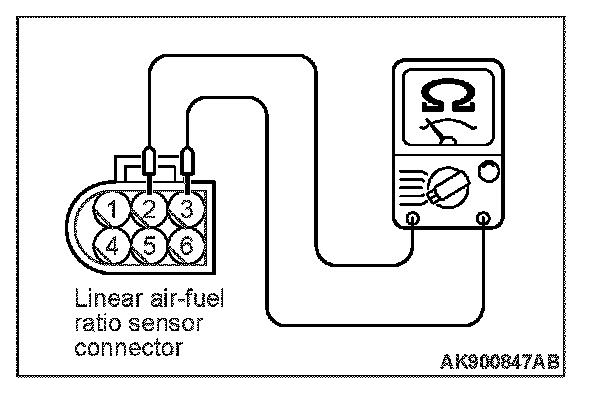 LINEAR AIR-FUEL RATIO SENSOR CHECK1. Disconnect the linear air-fuel ratio sensor connector and connect special tool MB991658 to the connector on the linear air-fuel ratio sensor side.