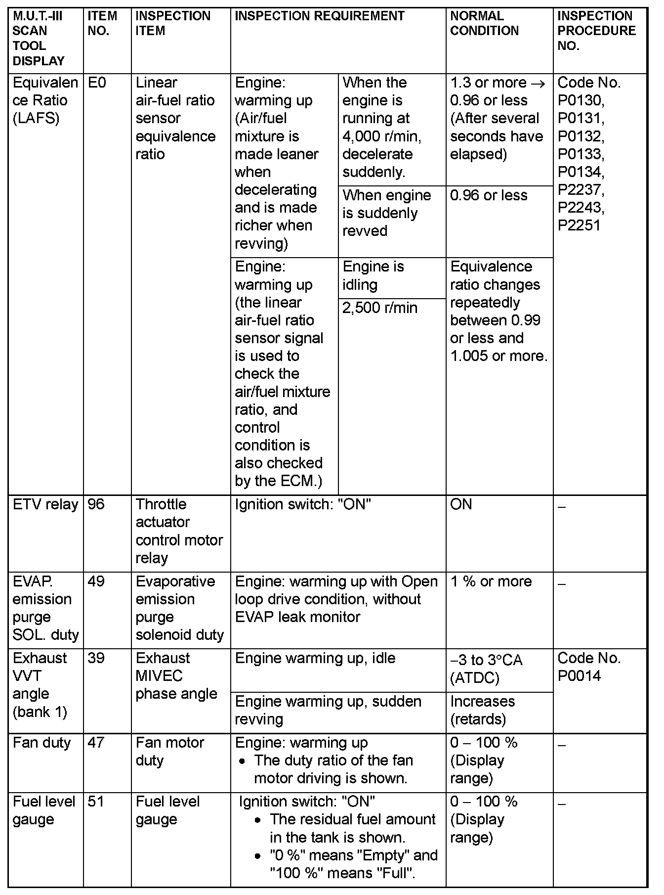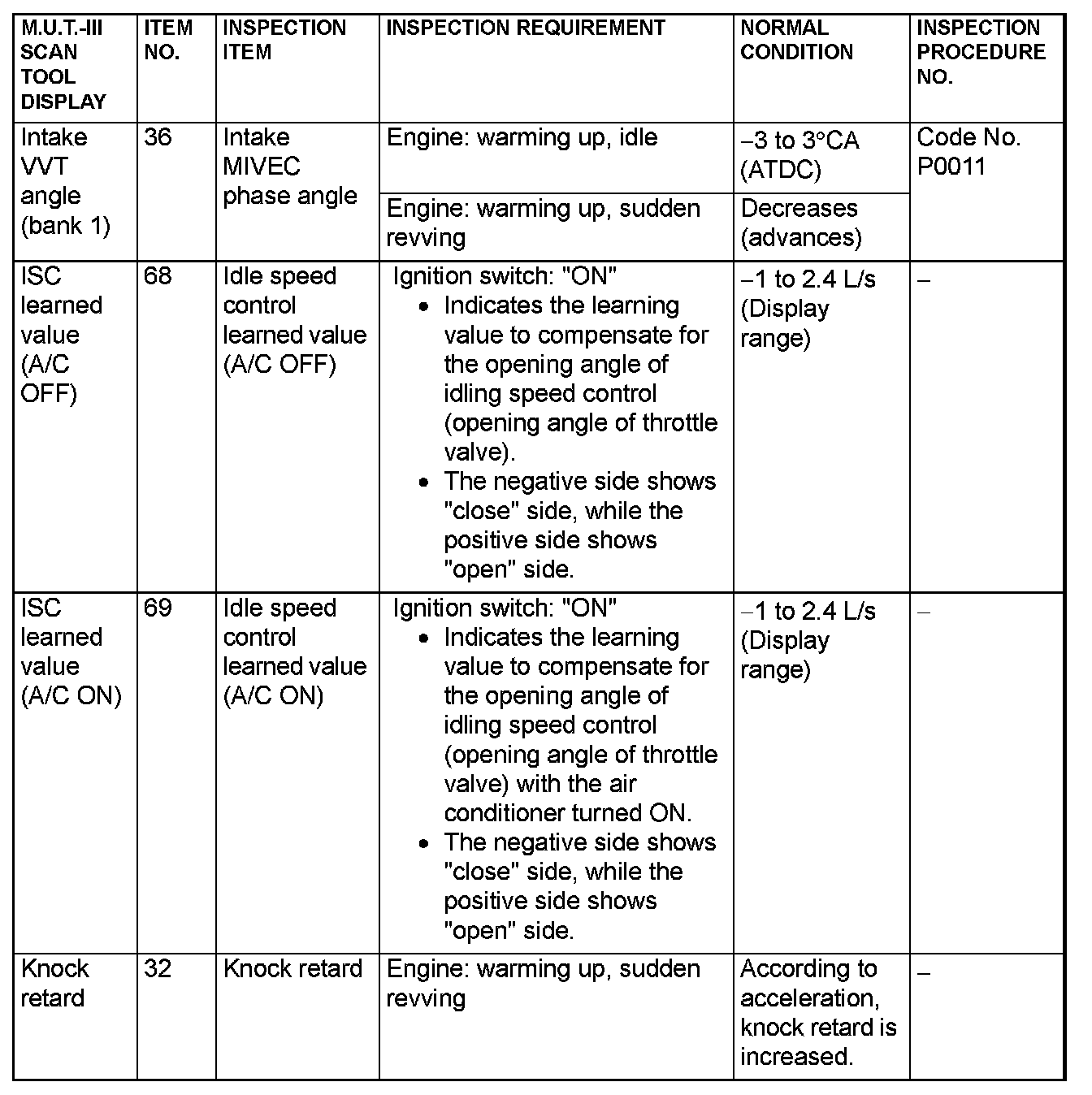 - *5: Data items are displayed on scan tool display, but the in-line 4 engine is not applicable and its data is displayed as "N/A".