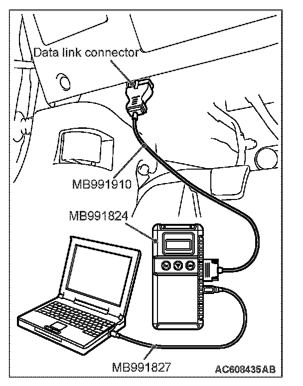 1. Connect scan tool MB991958 to the data link connector.