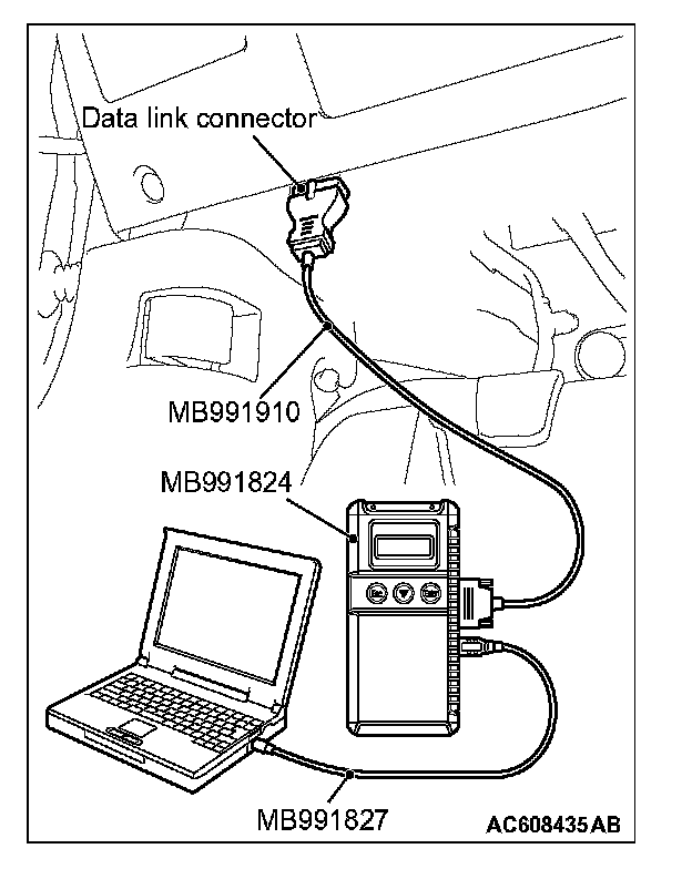 4. Connect the M.U.T.-III to the diagnosis connector (But do not start the engine).