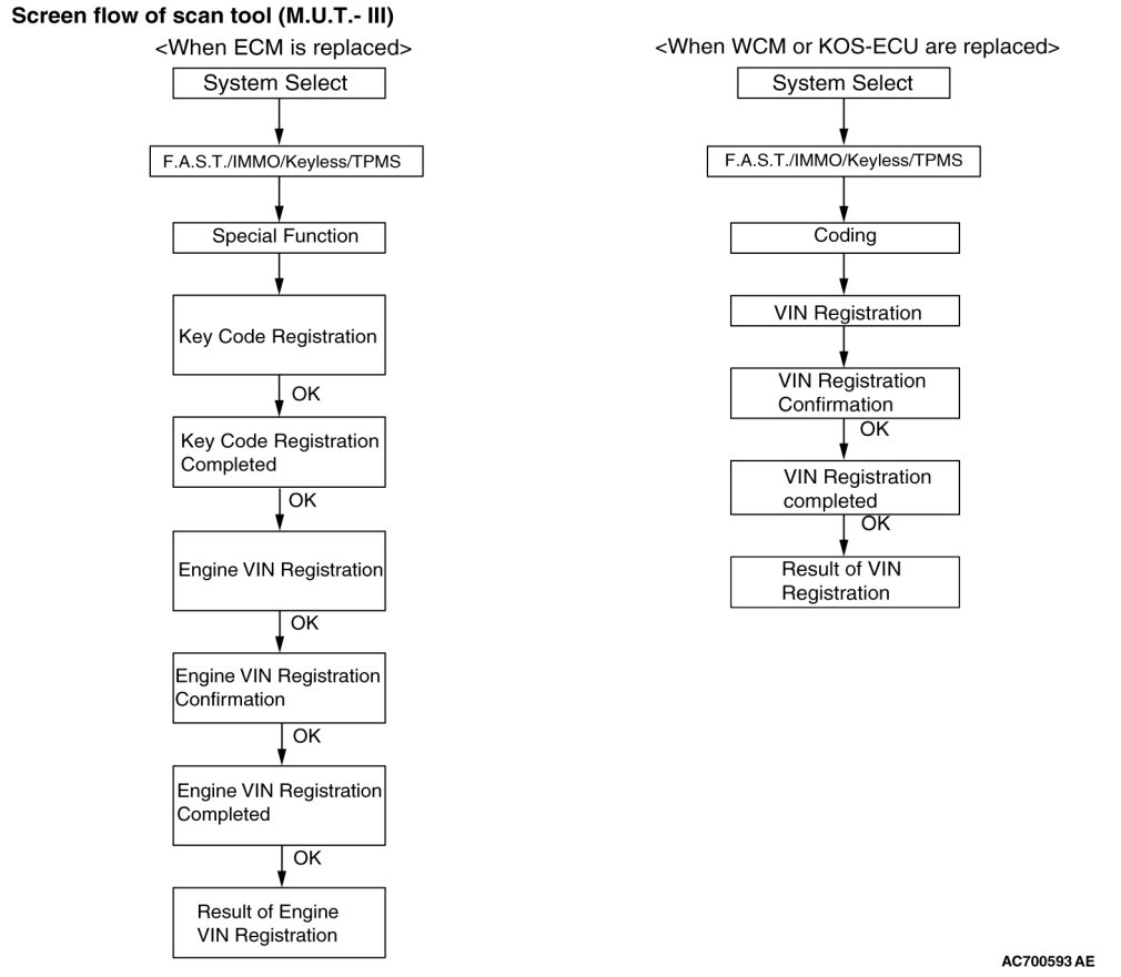 Follow the procedure below to register the VIN of the Wireless Control Module (WCM) and the Keyless Operation System (KOS).