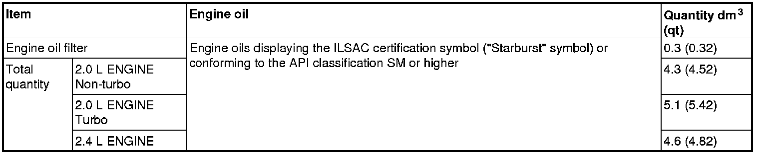 Use only engine oils displaying the ILSAC certification symbol ("Starburst" symbol) on the container.