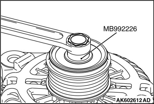 1. Set the special tool MB992226 to the pulley.