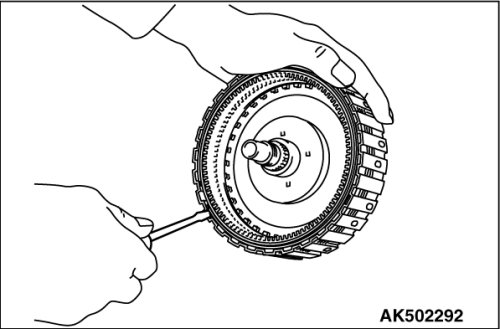 Using a flat blade screwdriver etc., remove the snap ring from the forward clutch drum.