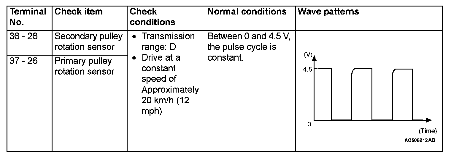 With the connector remain connected, connect the oscilloscope probe to each terminal of TCM.