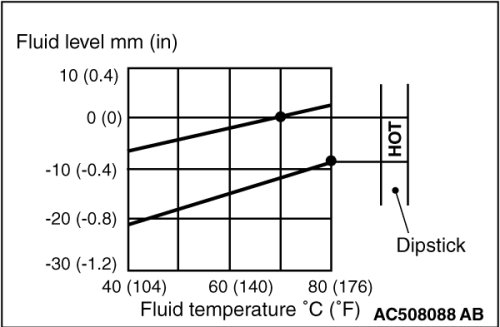 When a certain amount of time is required to warm up the transmission fluid to the normal operating temperature 70 - 80°C (158 - 176°F), check the oil level referring to the characteristics chart.
