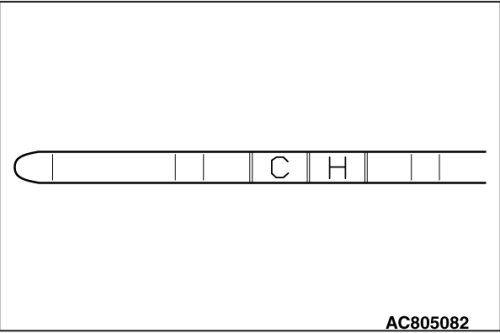 5. Check that the transmission fluid level is within the "H" area on the dipstick. If the fluid level is low, add the transmission fluid to the "H" level.