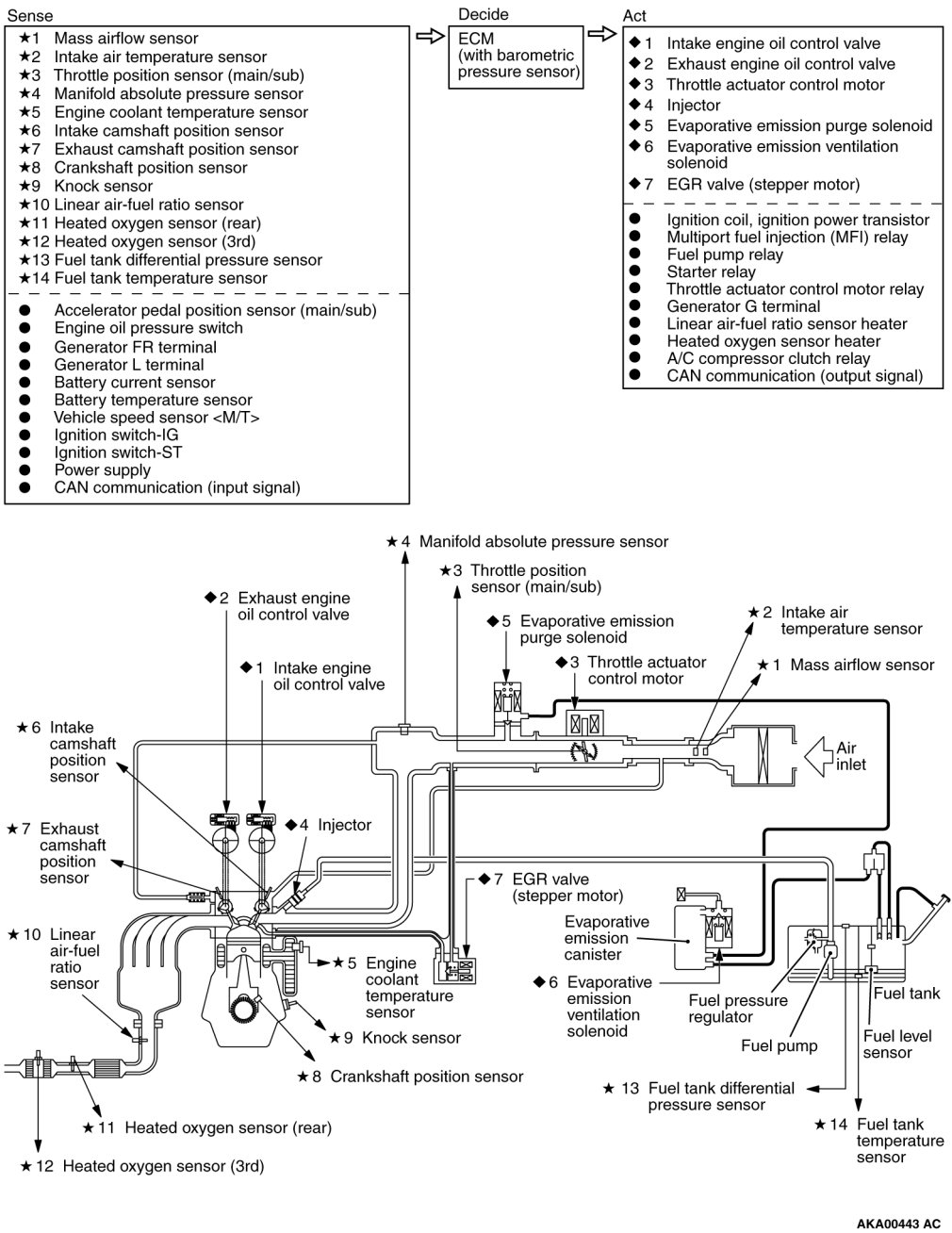 - The RAM data inside the ECM that is related to the sensors and actuators can be read with the scan tool. In addition, the actuators can be controlled by scan tool MB991958 (M.U.T.-III sub assembly) under certain circumstances.