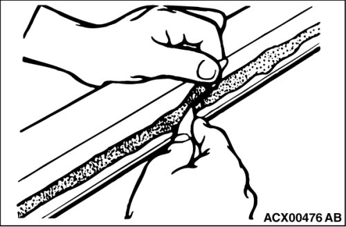 (1) Using a sharp-point drill, make a hole in the windshield adhesive.