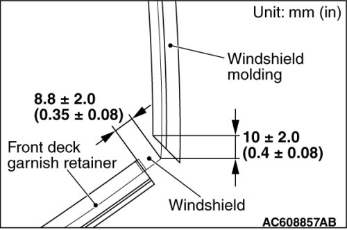 1. When replacing the windshield glass, temporarily set the windshield glass against the body, and place a mating mark on the windshield glass and body.