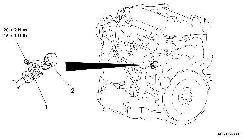 - When the knock sensor replacement is performed, use scan tool MB991958 to initialize the learning value Initialization Procedure for Learning Value in MFI Engine .)