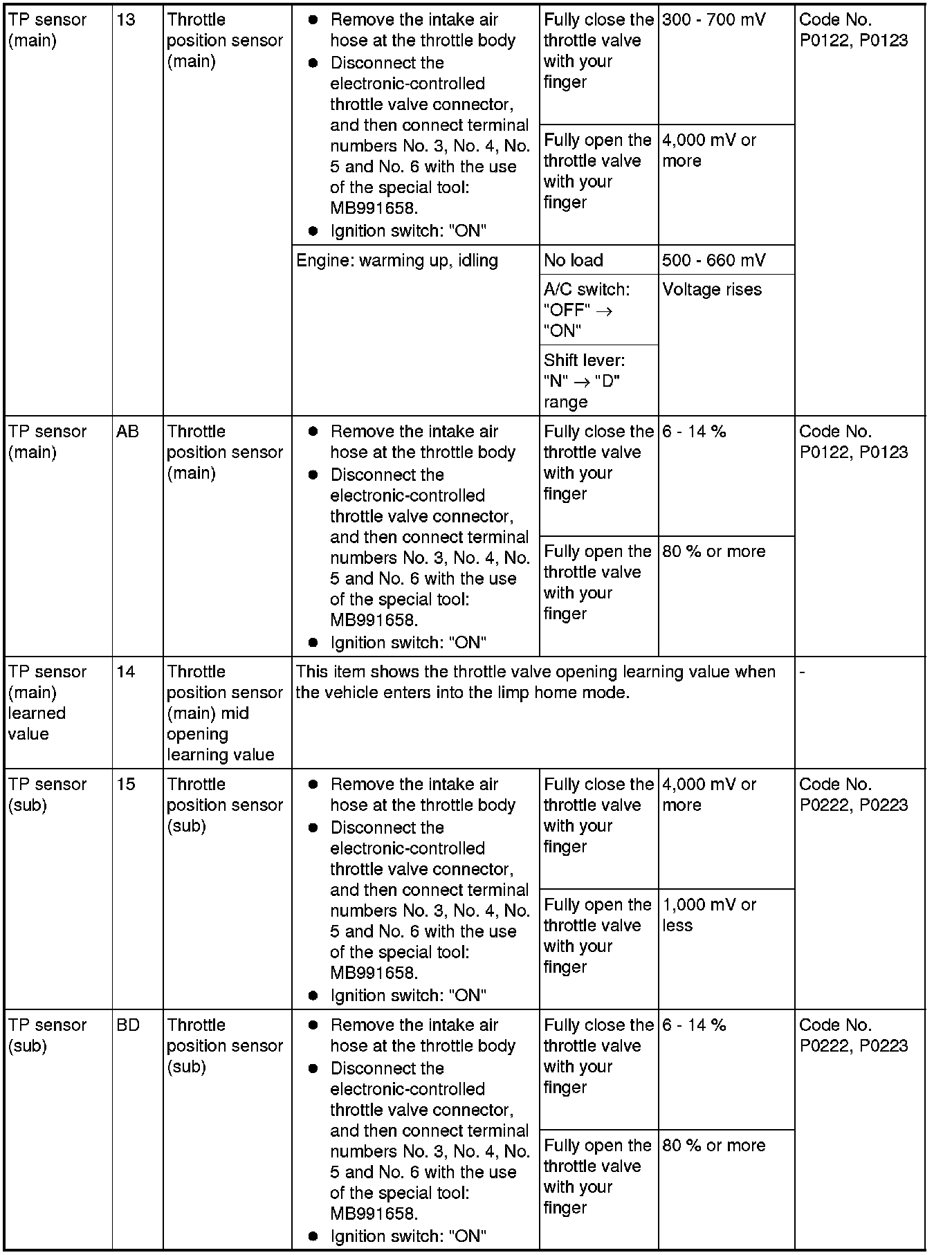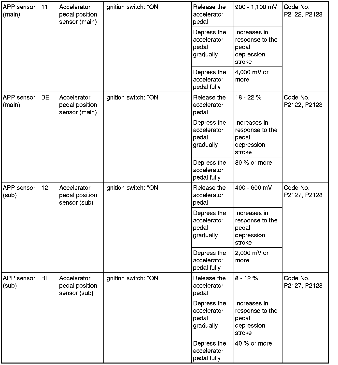 *1: In a new vehicle [driven approximately 500 km (311 mile) or less], the mass airflow sensor output value is sometimes 10% higher than the standard value.