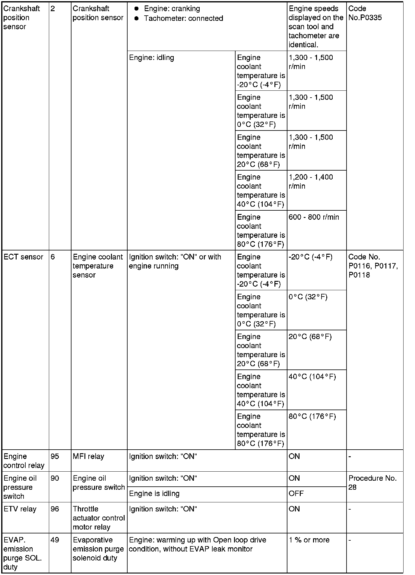 *5: Data items are displayed on scan tool display, but the in-line 4 engine is not applicable and its data is displayed as "N/A".