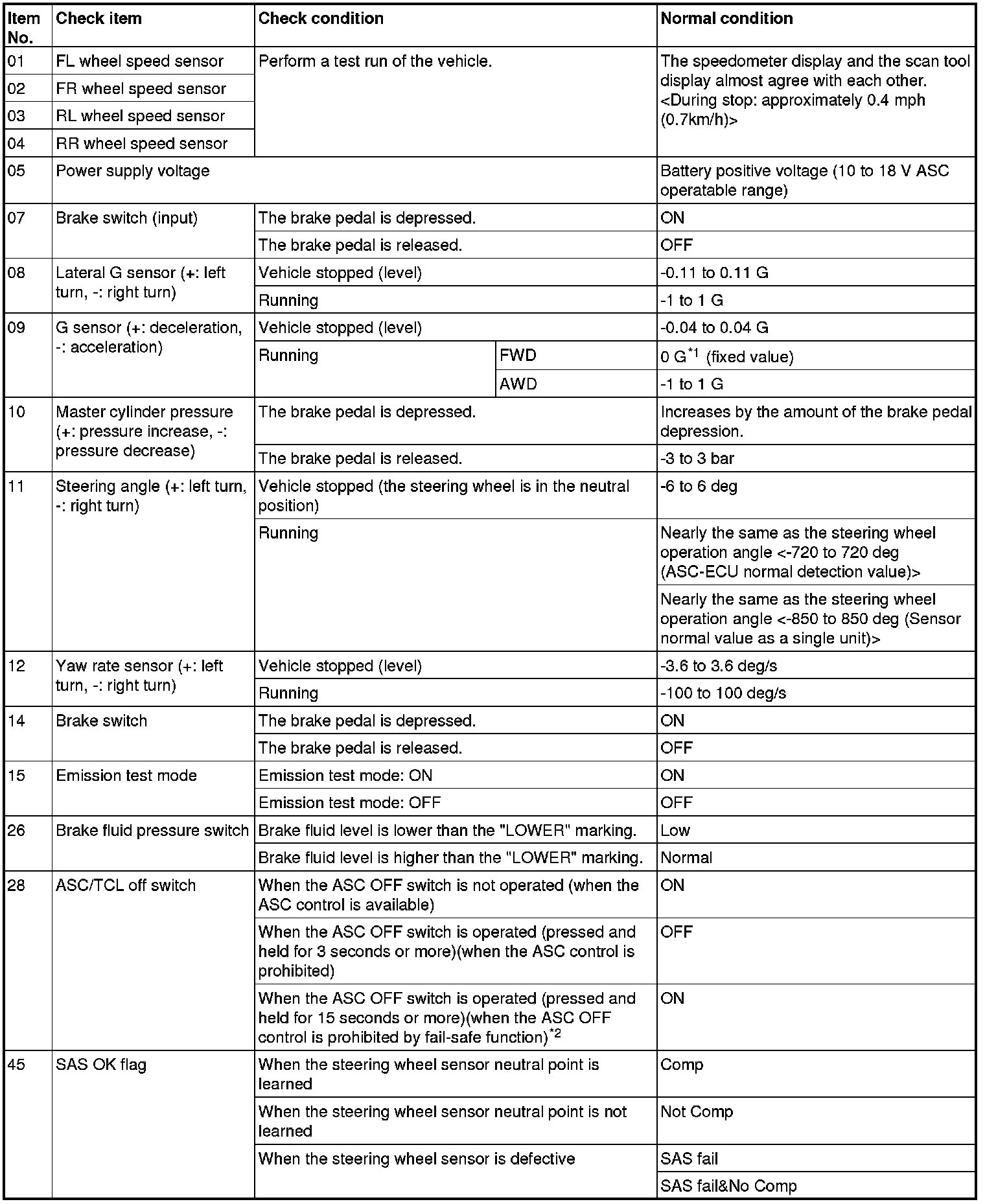 The following items can be read by the scan tool from the ASC-ECU input data.
