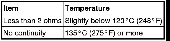 When the oil temperature is 135°C (275°F) or more and there is no continuity, the resistance will not be 2ohms or lower until the oil temperature reduces to 120°C